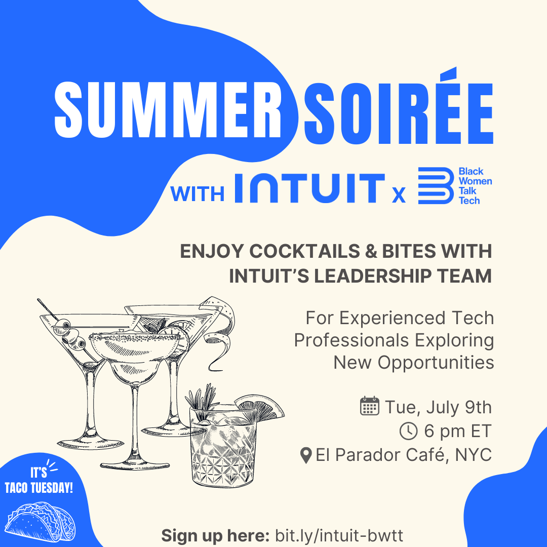 Join Black Women Talk Tech & Intuit on Tuesday, July 9th at El Parador Cafe, 325 E 34th Street.